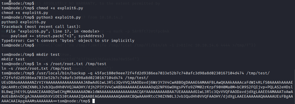 作成したディレクトリを/root/root.txtにシンボリックリンクします。