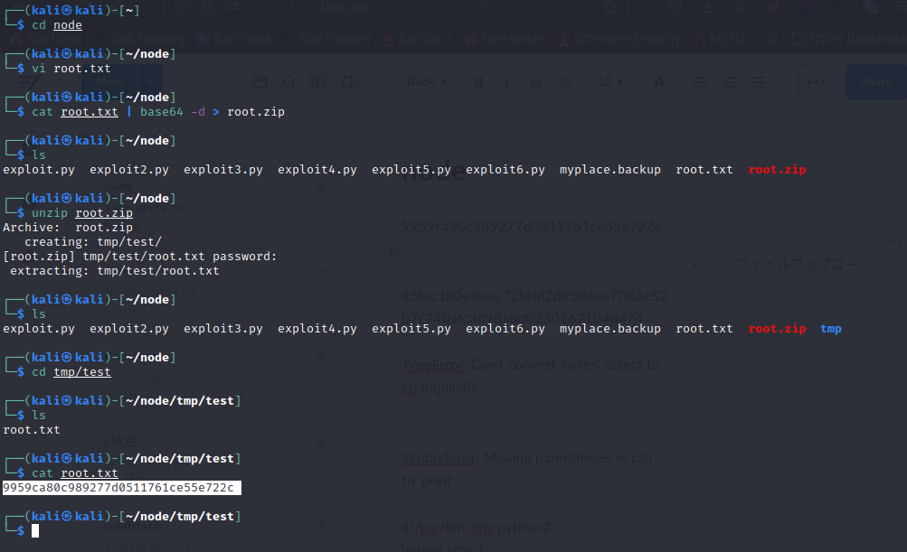 解凍後、ファイルを開くとroot.txtが見つかります。